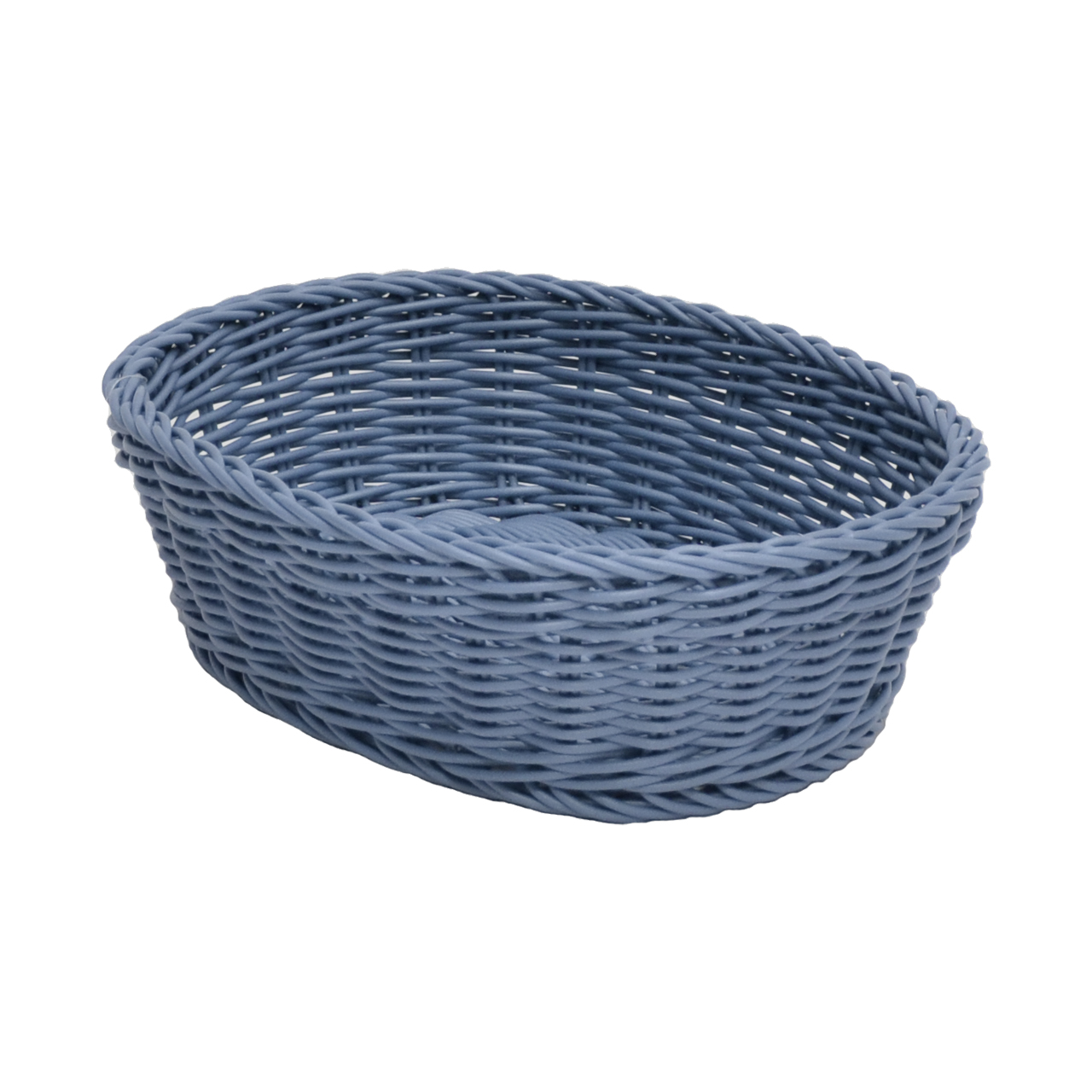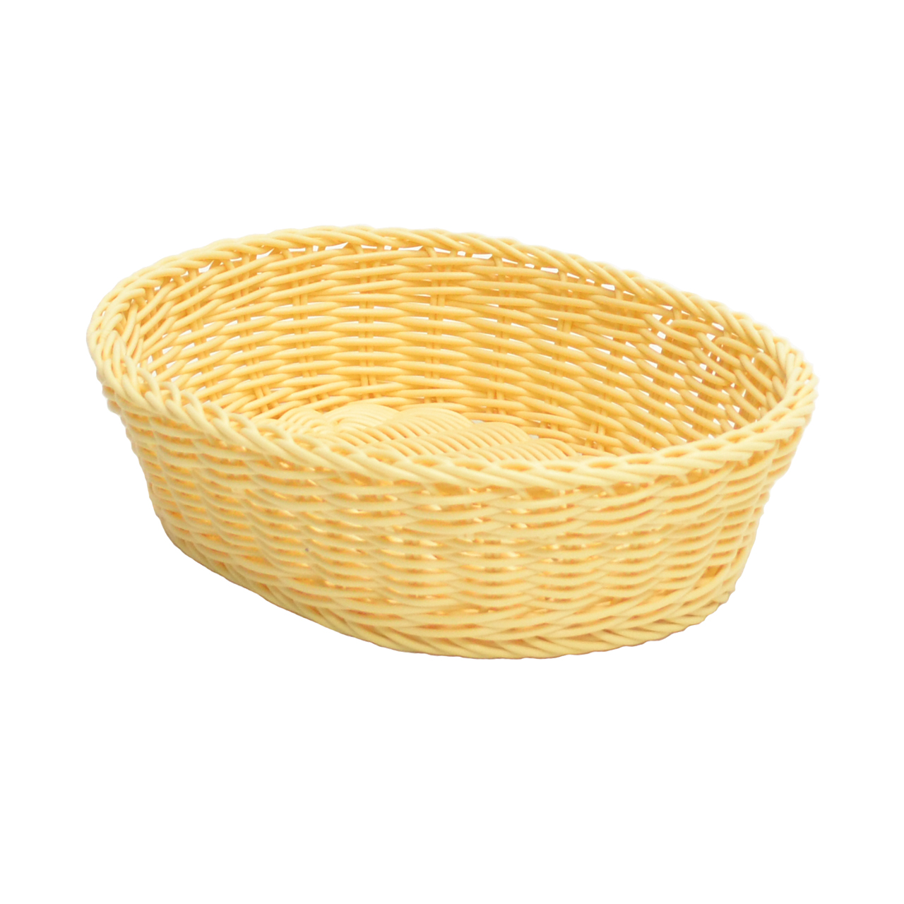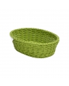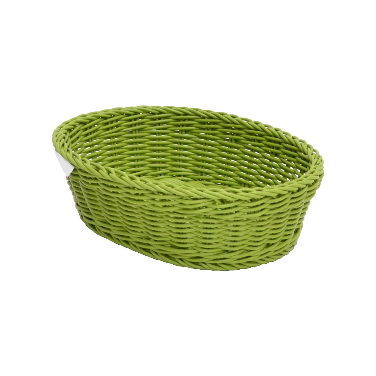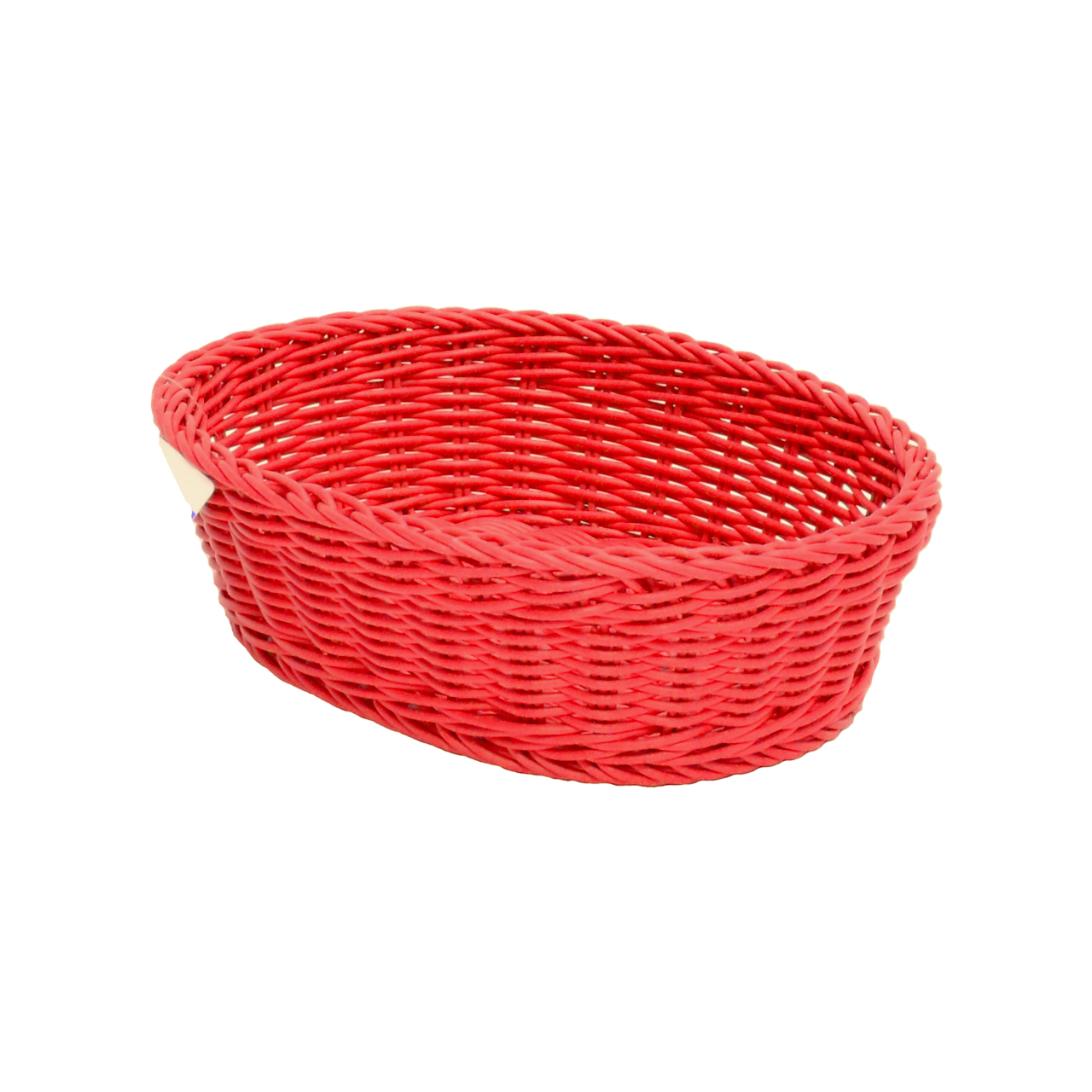 An small basket that is oval shaped. Made of plastic but looks like rattan. The advantages of having it made from plastic is that even after some time the basket is still flexible and will not get modly easily. Since it is made from plastic it can be washed to keep clean. Unlike natural rattan water will not spoil the basket. Compare to natural rattan the plastic rattan is more resistant to outdoor environment, but nonetheless it is not advised to leave under sun or in the rain for long periods of time.