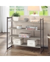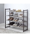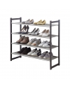 A simple shoe rack that is made entirely of metal. However it is not overwhelmingly heavy and it is due to its mesh patterned tiers. Although the shoe rack is fully metallic the ends are fitted with plastic stoppers to prevent scratching of the surface the shoe rack is on. A shoe rack can also be used as a storage rack for various other obejects. In kitchen they can be use for stacking cookwares and other heavier objects. In living room they can be use to store books & magazines.